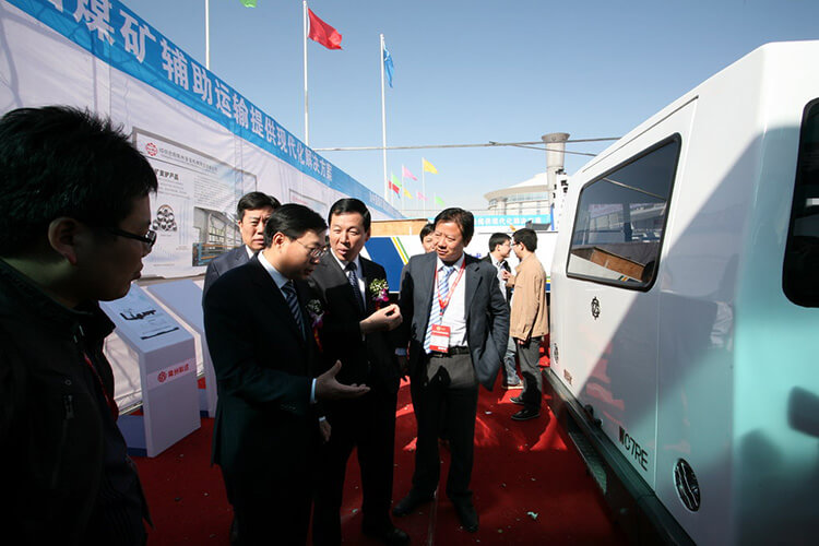博覽會上,350-m2的大型展臺、精美的裝修、六輛新型無軌膠輪車的宏偉展出向國內外客戶充分展示了公司的綜合實力,全方位介紹了公司輔助運輸各種產品在煤礦最新應用情況。集中展示了應用于井下無軌膠輪車產品,吸引了數千名參觀者,得到了與會企業代表、業內專家以及參觀客戶的關注。此次展覽會期間共接待約200多人次。