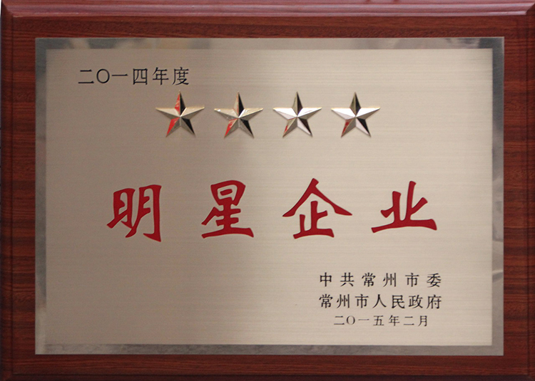 公司榮獲常州市“工業四星企業”的榮譽稱號,公司董事長兼總經理姜漢軍被常州市委、市政府授予“常州市明星企業家”的榮譽稱號。
