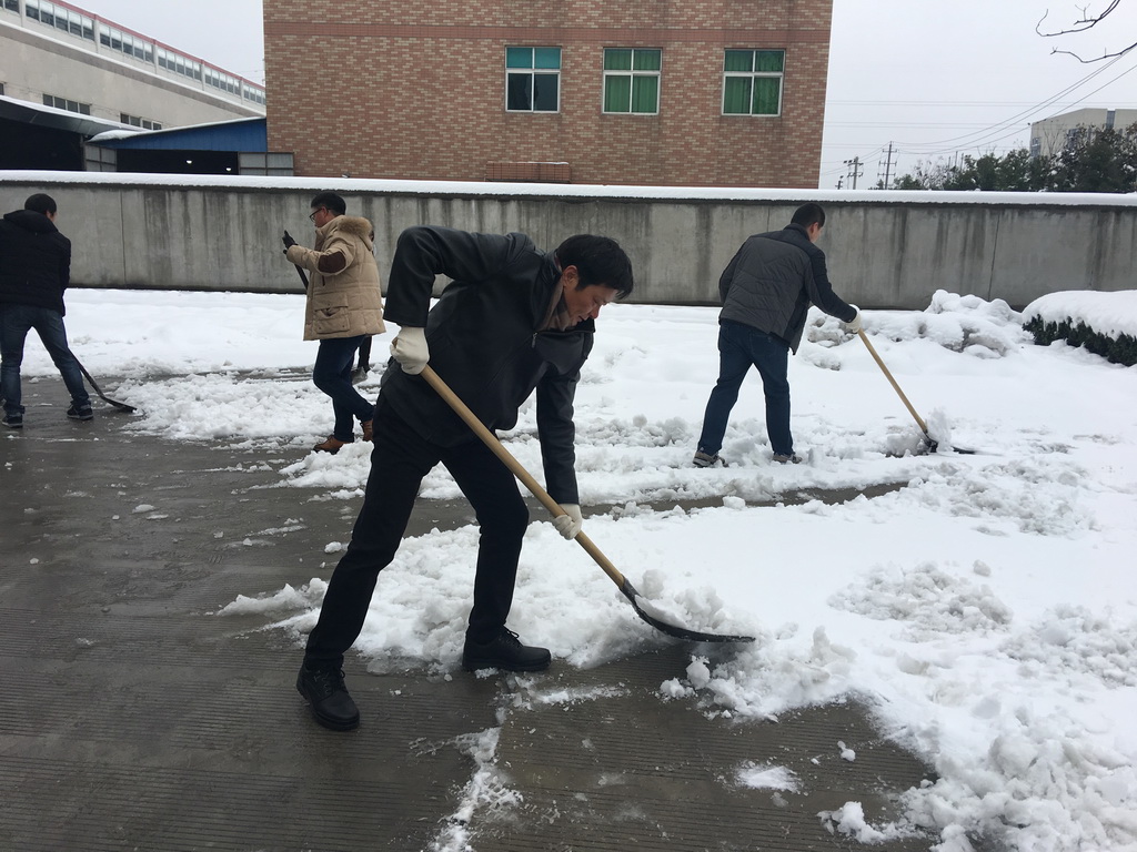 2018年初大雪的降臨,把整個科試集團裝飾的銀裝素裹。在成為美景的同時,也給員工造成了許多不便,為確保早日恢復正常的生產秩序,解決廣大員工的后顧之憂,公司在姜漢軍董事長帶領下,組織了部分中高層管理者和部分員工、保安組成的義務除雪活動。刺骨的寒風肆無忌憚的呼嘯,擋不住大家的滿腔熱情,經過幾個小時的共同努力,員工們清掃出了主要通道,望著自己的勞動成果,大家的臉上都洋溢著勝利的喜悅。