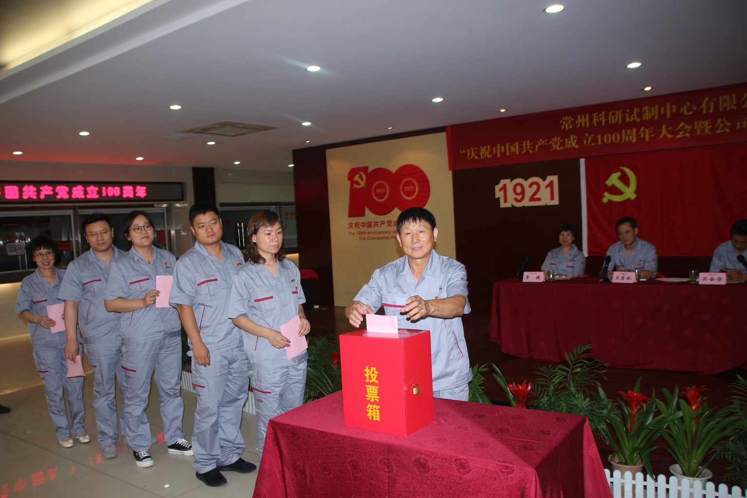 為慶祝中國(guó)共產(chǎn)黨成立一百周年,傳承紅色基因,延續(xù)奮斗精神,動(dòng)員公司廣大黨員不忘初心、牢記使命, 7月1日下午2點(diǎn)30分,公司黨委在員工食堂隆重集會(huì),召開(kāi)慶祝建黨100周年大會(huì)暨公司黨委換屆選舉大會(huì),參會(huì)全體黨員共同回顧黨的奮斗歷史,謳歌黨的光輝業(yè)績(jī),回首過(guò)去,展望未來(lái),履行職責(zé),圓滿完成公司新一屆黨委換屆選舉。公司64名正式黨員參加大會(huì),3名預(yù)備黨員和3名編外黨員列席了大會(huì)。大會(huì)由集團(tuán)副總裁關(guān)金學(xué)主持。